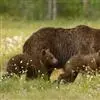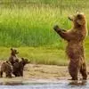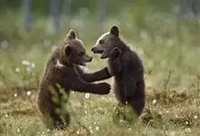棕熊是熊科熊属哺乳动物。体形健硕,肩背隆起,身后长有一条短尾。毛色多为棕褐色或棕黄色;老年呈银灰色;幼年为棕黑色。野生条件下寿命为20—30年。棕熊分布广泛,主要分布在欧亚大陆和北美,…全部>>