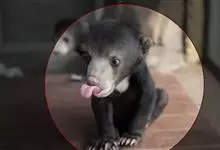 马来熊,是食肉目熊科马来熊属哺乳动物。体胖颈短,眼睛和耳朵小;头部短圆;全身乌黑光滑;鼻唇周为棕黄色,裸露无毛;眼圈为灰褐色,趾基部连有短蹼;胸斑中央有一个毛旋,颈部周围的一圈皮肤极松弛,…全部>>