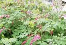 荷包牡丹 Fukuhara),是罂粟科荷包牡丹属的多年生草本植物,株高30-60厘米,具肉质根状茎;茎直立呈圆柱形;叶二回三出全裂,状似牡丹叶;总状花序顶生,基部为心形,花瓣紫红色至粉红色,稀白色,…全部>>