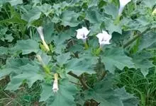 曼陀罗,茄科曼陀罗属一年生大型草本植物,全株光滑。有臭气;叶呈广卯形,边缘具不规则波状浅齿裂;花单生于枝杖间或叶腋,直立,有短梗;花萼是筒状裂片三角形,颜色为白色或淡紫色;果实为蒴果卵状,…全部>>