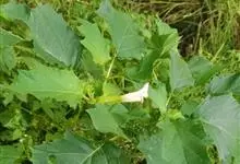曼陀罗,茄科曼陀罗属一年生大型草本植物,全株光滑。有臭气;叶呈广卯形,边缘具不规则波状浅齿裂;花单生于枝杖间或叶腋,直立,有短梗;花萼是筒状裂片三角形,颜色为白色或淡紫色;果实为蒴果卵状,…全部>>