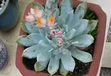 薄叶蓝鸟 叶片蓝绿色,叶尖红色,带粉,花型紧凑,非常漂亮。原产于墨西哥,现世界各地均有栽培。全部>>