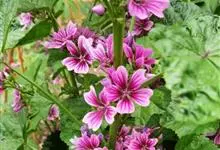 锦葵:二年生或多年生直立草本,高50-90厘米,分枝多,疏被粗毛。叶圆心形或肾形,具5-7圆齿状钝裂片,两面均无毛或仅脉上疏被短糙伏毛。花3-11朵簇生,小苞片3,长圆形疏被柔毛;花紫红色或白色,…全部>>