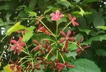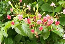 使君子 Jongkind)是使君子科、使君子属攀援灌木,叶对生,椭圆形,两面均被灰白色柔毛。穗状花序,倒挂下垂。花期夏秋。果有五棱,熟时黑色,种子白色。分布于印度、缅甸、菲律宾和中国。喜温润,深根性,…全部>>