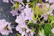 马银花 Planch.ex Maxim.):常绿灌木,高2-4米;小枝灰褐色,疏被具柄腺体和短柔毛。叶革质,卵形或椭圆状卵形,上面深绿色,有光泽,下面仅中脉凸出,侧脉和细脉不明显,无毛。…全部>>