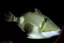 狐面鱼,学名:Siganus vulpinus ,又名狐狸鱼,分布于菲律宾、中国台湾、太平洋的珊瑚礁海域,属臭肚鱼科。体长15-20cm,椭圆形。头部三角形,嘴尖前突。眼睛靠近头顶。体色金黄,背部中…全部>>