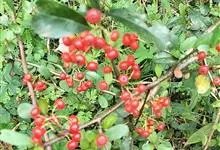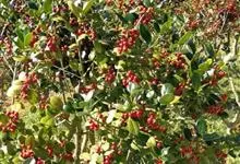 火棘 H. L. Li)是蔷薇科火棘属常绿灌木,老枝呈暗褐色;叶片呈倒卵形,边缘有钝锯齿,齿尖向内弯,两面皆无毛;叶柄短,无毛或嫩时有柔毛;花序是复伞房状,花瓣呈白色近圆形;果球近圆形,…全部>>