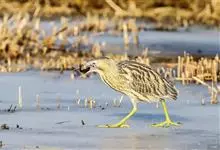 紫背苇鳽是鹭科、苇鳽属动物,为涉禽,体长约33厘米。头顶黑色,后头至尾上覆羽暗栗褐色;翅上覆羽橄榄黄色;下体浅棕黄色。多生活于水库和山脚边的稻田、芦苇丛、滩涂及沼泽草地,在西藏见于海拔2300米的农田,…全部>>