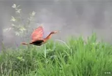 紫背苇鳽是鹭科、苇鳽属动物,为涉禽,体长约33厘米。头顶黑色,后头至尾上覆羽暗栗褐色;翅上覆羽橄榄黄色;下体浅棕黄色。多生活于水库和山脚边的稻田、芦苇丛、滩涂及沼泽草地,在西藏见于海拔2300米的农田,…全部>>