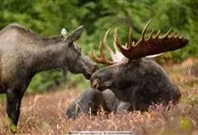 驼鹿:鹿科、驼鹿属动物。体长200-260厘米,肩高160-240厘米,体重400-700千克。肩部特别高耸,则又像骆驼背部的驼峰,因此得名。以雄性的掌形鹿角为特征。驼鹿共有8个亚种,…全部>>