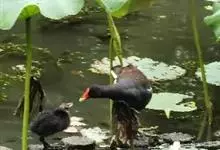 黑水鸡:是鹤形目、秧鸡科的鸟类,共有12个亚种。中型涉禽,体长24-35厘米。嘴长度适中,鼻孔狭长;头具额甲,后缘圆钝;嘴和额甲色彩鲜艳。翅圆形,第2枚初级飞羽最长,或第2枚和第3枚初级飞羽等长,…全部>>