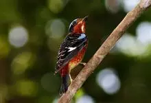 栗腹矶鸫是鸫科、矶鸫属小型鸟类,体长20-25厘米。雄鸟上体呈辉亮的钴蓝色,两翅黑褐色,喉蓝黑色,其余下体栗红色。雌鸟上体橄榄褐色,背具黑色鳞状斑,下体棕白色密杂以黑褐色横斑,黑白相衬,极为醒目,…全部>>