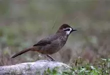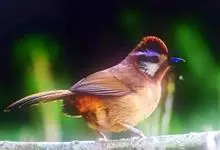 白颊噪鹛是雀形目噪鹛科噪鹛属鸟类,又称土画眉、小画眉、小噪鹃。成鸟额至头顶栗褐色,长眉纹、眼先和颊纹棕白色,眼后至耳羽深褐色,…全部>>