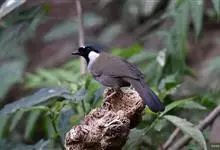 黑喉噪鹛是噪鹛属鸟类。体长24-29厘米,体重75-90克。雄鸟前额、眼先、眼周和眼后纹以及颊、须和喉黑色;黑色前额和蓝灰色头顶之间有道白色细斑;颈侧具椭圆形白斑,…全部>>