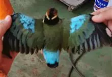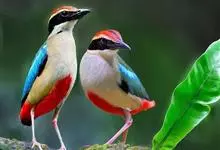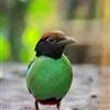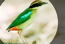 绿胸八色鸫:是雀形目八色鸫科的鸟类,共有12个亚种。体长为16-18厘米,体重65-69克。体型圆胖,尾短,腿长。头黑,上体绿色,两翼深色而具白色斑纹,头顶至后枕深褐,胸及腹部苹果绿,臀亮红。…全部>>