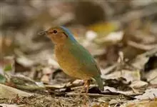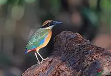 栗头八色鸫又叫锅巴雀,体长为24-26厘米,体重100-135克,是雀形目八色鸫科的鸟类。体型圆胖,尾短,腿长,常在森林底层或低植被中找食无脊椎动物。叫声简单哀婉。…全部>>