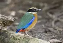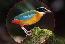 蓝翅八色鸫是雀形目八色鸫科的鸟类。体长17-20厘米,体重类约48-70克,体型圆胖,尾短,腿长,以身体具有红、绿、蓝、白、黑、黄、褐、栗等鲜艳夺目,丰富艳丽的色彩而得名,是很有观赏价值的鸟类。主要…全部>>