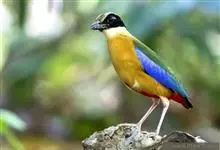 蓝翅八色鸫是雀形目八色鸫科的鸟类。体长17-20厘米,体重类约48-70克,体型圆胖,尾短,腿长,以身体具有红、绿、蓝、白、黑、黄、褐、栗等鲜艳夺目,丰富艳丽的色彩而得名,是很有观赏价值的鸟类。主要…全部>>