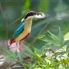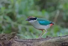 绿胸八色鸫:是雀形目八色鸫科的鸟类,共有12个亚种。体长为16-18厘米,体重65-69克。体型圆胖,尾短,腿长。头黑,上体绿色,两翼深色而具白色斑纹,头顶至后枕深褐,胸及腹部苹果绿,臀亮红。…全部>>