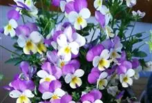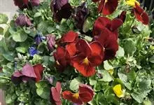 角堇:为堇菜科堇菜属多年生草本植物。株高10-30厘米 ,宽幅20-30厘米。具根状茎。茎较短而直立,分枝能力强。花两性,两侧对称,花梗腋生,花瓣5,花径 2.5-4.0厘米。花色丰富,…全部>>