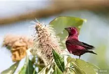 酒红朱雀小型鸟类,体长13~15厘米。雄鸟通体深红色,头部深朱红或棕红色,下背和腰玫瑰红色,眉纹粉红色而具丝绢光泽。两翅和尾黑褐或灰褐色、具暗红色狭缘,内侧两枚三级飞羽具淡粉红色先端。…全部>>