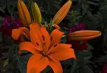 青岛百合是百合科百合属的多年生草本植物;鳞茎近球形;鳞片披针形,白色,无节;叶轮生,矩圆状倒披针形、倒披针形至椭圆形,先端急尖,基部宽楔形,具短柄,两面无毛;苞片叶状,披针形;花橙黄色或橙红色,…全部>>