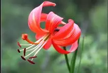 山丹是百合科百合属的多年生草本植物。鳞茎卵形或圆锥形,鳞片长圆形或长卵形,白色;叶散生茎中部,线形,边缘有乳头状突起;花单生或数朵成总状花序,花鲜红色,常无斑点,花被片反卷,…全部>>