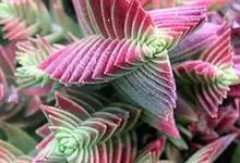 茜之塔 Toelken)是景天科青锁龙属多年生肉质草本植物。茜之塔叶交互对生,紧密排列,三角形,绿色,冬季叶转变呈红色;花小,白色;花期秋季。茜之塔因其整齐层叠的紫红色叶片让人想到红色佛塔,故名。…全部>>
