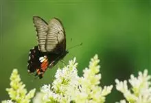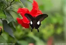 玉斑凤蝶Papilio helenus 别名白纹凤蝶,是凤蝶科凤蝶属美凤蝶亚属大型种类。雌雄同型;体翅皆黑色,后翅正面中室外有3个并列的白色斑,亚外缘有1列模糊的新月形红色斑,…全部>>