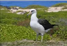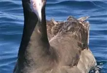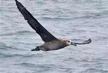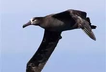 黑脚信天翁为鹱形目信天翁科下的一种大型海鸟, 单型种,无亚种分化。体长79-83厘米。嘴黑色,嘴基和眼下方灰白色,其余全身黑褐色。个别尾上覆羽和尾下覆羽白色,脚黑色,能与短尾信天翁区别。 全部>>