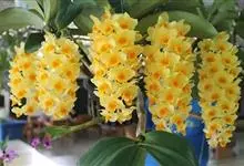 报春石斛,是兰科石斛属植物,茎下垂,厚肉质,圆柱形,不分枝,具多数节;叶纸质互生于整个茎上,披针形或卵状披针形,…全部>>