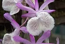 美花石斛是兰科石斛属多年生草本。茎柔弱,斜立或下垂,呈细圆柱形,有时分枝;叶互生于茎上,舌形或长圆状披针形;花为白或淡紫红色,侧生于有叶老茎上端,中萼片卵状长圆形,先端锐尖,侧萼片与中萼片相似,…全部>>
