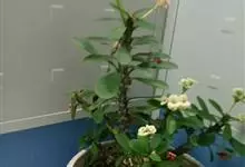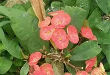 虎刺梅:别称铁海棠,是蔓生灌木植物。茎多分枝,长60-100厘米,直径5-10毫米,具纵棱,密生硬而尖的锥状刺,刺长1-1.5厘米,直径0.5-1.0 毫米,常呈3-5列排列于棱脊上,呈旋转。叶互生…全部>>
