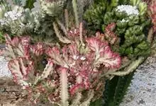 彩春峰是大戟科大戟属肉质植物,彩春峰的肉质茎依品种的不同有暗红色、乳白、淡黄及镶边、斑纹等复色。彩春峰的性状很不稳定,栽培中经常会发生色彩的变异,如暗紫红色肉质茎会长出白色黄色斑块等。…全部>>