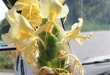 黄姜花:姜科,姜花属多年生草本草本芳香花卉,秋冬季开花,穗状花序,长圆形;苞片长椭圆形,覆瓦状排列,每一苞片内有花3-5朵;花深黄色,形似蝴蝶,气味芬芳纯正,沁人心脾;唇瓣倒心形,黄色,…全部>>