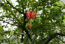 吊灯扶桑 Hook. f.)为锦葵科木槿属的常绿灌木。高达3米;小枝常下垂;叶椭圆形或长圆形,先端尖或短渐尖,基部楔形;花梗细,无毛或具纤毛,中部具节;蒴果长圆柱形;花期全年。因似灯笼高挂,…全部>>