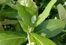 牛角瓜 W. T. Aiton)是夹竹桃科、牛角瓜属直立灌木,高达3米,全株具乳汁;茎黄白色,枝粗壮,幼枝部分被灰白色绒毛。叶倒卵状长圆形或椭圆状长圆形,长8-20厘米,宽3.5-9.5厘米。…全部>>