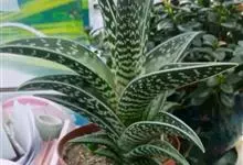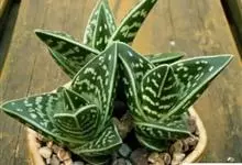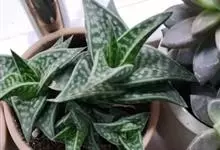 翠花掌是百合科、芦荟属植物。多年生肉质植物。株高20~30厘米具短茎,叶片三角剑形,肥厚多肉。表面下凹呈“V”形。叶长约12厘米,宽3-5厘米,有横向排列不规则的银白色或灰白色斑纹。松散的总状花序,…全部>>