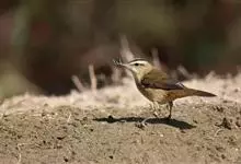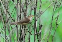 黑眉苇莺:体重7-11克,体长11-13厘米。上体橄榄棕褐色;眉纹淡黄色,杂有明显黑褐色纵纹;第2枚初级飞羽较第6枚短;下体白色,两胁暗棕色。虹膜暗褐色;嘴黑褐色,下嘴基淡褐色;脚暗褐色。…全部>>