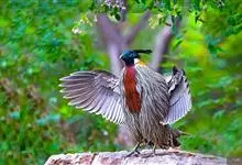 红腹角雉属于鸡形目雉科,雄鸟体羽及两翅主要为深栗红色,满布具黑缘的灰色眼状斑,下体灰斑大而色浅。雌鸟上体灰褐色,下体淡黄色,杂以黑、棕、白斑。全部>>