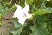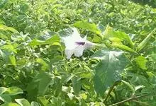 曼陀罗,茄科曼陀罗属一年生大型草本植物,全株光滑。有臭气;叶呈广卯形,边缘具不规则波状浅齿裂;花单生于枝杖间或叶腋,直立,有短梗;花萼是筒状裂片三角形,颜色为白色或淡紫色;果实为蒴果卵状,…全部>>
