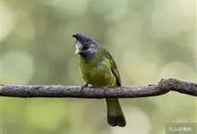 凤头雀嘴鹎:属小型鸟类,体长18-22厘米。嘴粗短、呈象牙色或乳黄色,前额和脸灰色,头顶黑色,有一朝前竖立的黑色羽冠。上体橄榄绿色,下体黄绿色,尾羽黄绿色具宽阔的黑褐色端斑。…全部>>