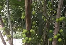 大果榕是桑科榕属的小乔木,株高可达10米;幼枝被柔毛;叶互生,宽卵状心形或近圆形;雄花无梗、匙形、花丝长,雌花生于雌株榕果内,子房白色;榕果簇生于树干基部或老茎短枝上、扁球形或陀螺形,…全部>>
