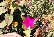 即紫茉莉,英文名:Four-o'clock,Marvel of Peru,为紫茉莉科、紫茉莉属多年生草本植物,一年生栽培。株高50~80cm。根粗壮,茎多分枝而散生。叶对生,卵形或心脏形。花数朵簇生…全部>>