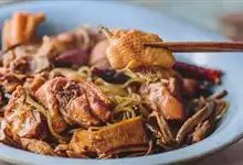 小鸡炖蘑菇是一道东北炖菜。通常是用干蘑菇、鸡肉和粉条一同炖制而成。榛蘑可以衬托出鸡肉的鲜香,粉条滑爽而绵实。小鸡炖蘑菇鸡肉鲜嫩,营养价值也很高。 全部>>