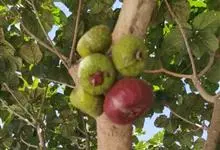大果榕是桑科榕属的小乔木,株高可达10米;幼枝被柔毛;叶互生,宽卵状心形或近圆形;雄花无梗、匙形、花丝长,雌花生于雌株榕果内,子房白色;榕果簇生于树干基部或老茎短枝上、扁球形或陀螺形,…全部>>
