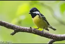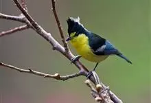 黄腹山雀是雀形目山雀科山雀属鸟类。虹膜褐色或暗褐色;嘴蓝黑色或灰蓝黑色;头、喉胸斑黑色,颊斑、颈后斑白色;上体蓝灰色,腰银白色;翼具两排白色点斑;下胸、腹鲜黄色;尾黑色,…全部>>