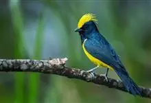 冕雀:共有4个亚种。体长20-21厘米,体重34-49克。具蓬松的黄色长型冠羽。雌鸟似雄鸟,但喉及胸深橄榄黄色,上体沾橄榄色。不会被误认的体大的黄色及黑色山雀。混群栖于原始林及次生林的林冠层,…全部>>