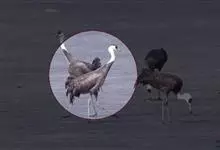 白头鹤,是鹤形目鹤科鹤属动物。白头鹤为大中型涉禽,体形较丹顶鹤小,体长90~97厘米,除头部和颈的上部为白色外,其余各部羽毛均为灰色;眼先至额部为黑色,头顶上的皮肤裸露无羽毛,呈鲜红色、虹膜深褐色,…全部>>