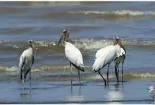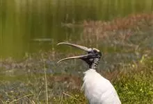 黑头鹮鹳:大型涉禽。体长102厘米,翼展150-175厘米,体重2050-2640克。寿命10年。嘴长而粗壮,飞时头颈伸直。雌雄相似。成鸟上体白色,下体白色。翼下覆羽有黑色横带,具绿色光泽和白色羽缘。…全部>>
